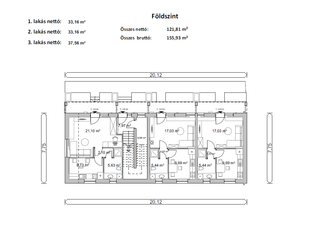 Mintaterv: Kétszintes, 5 lakásos társasház.