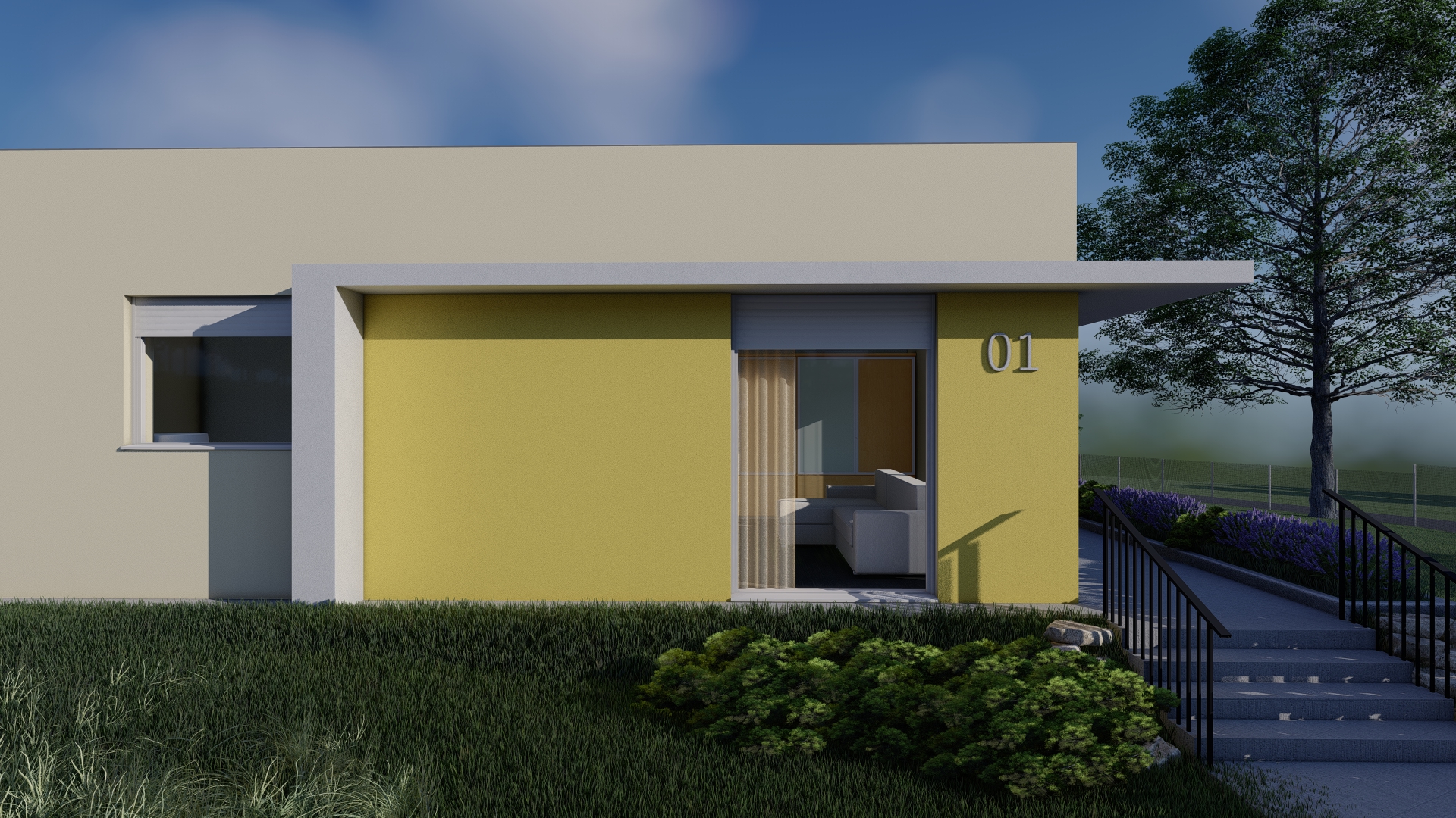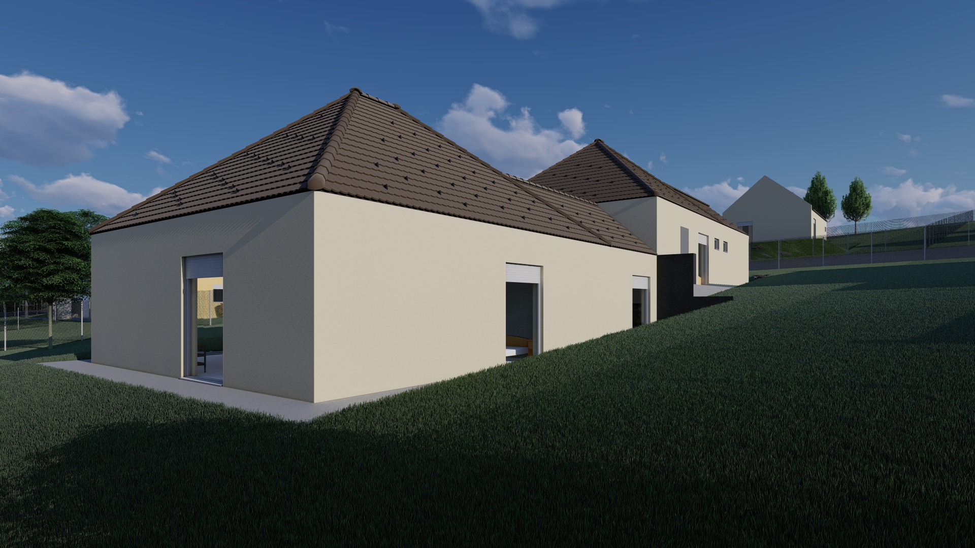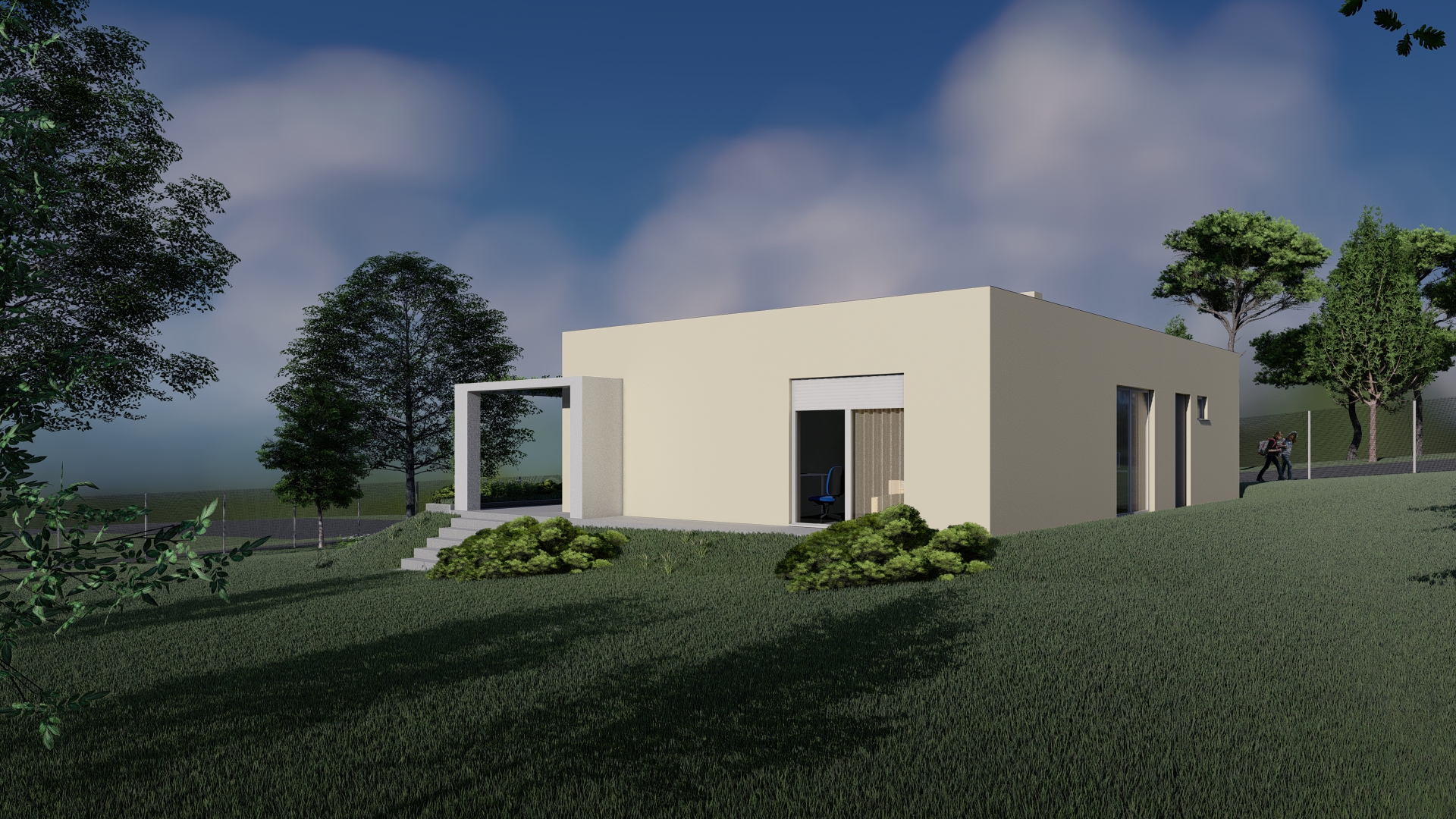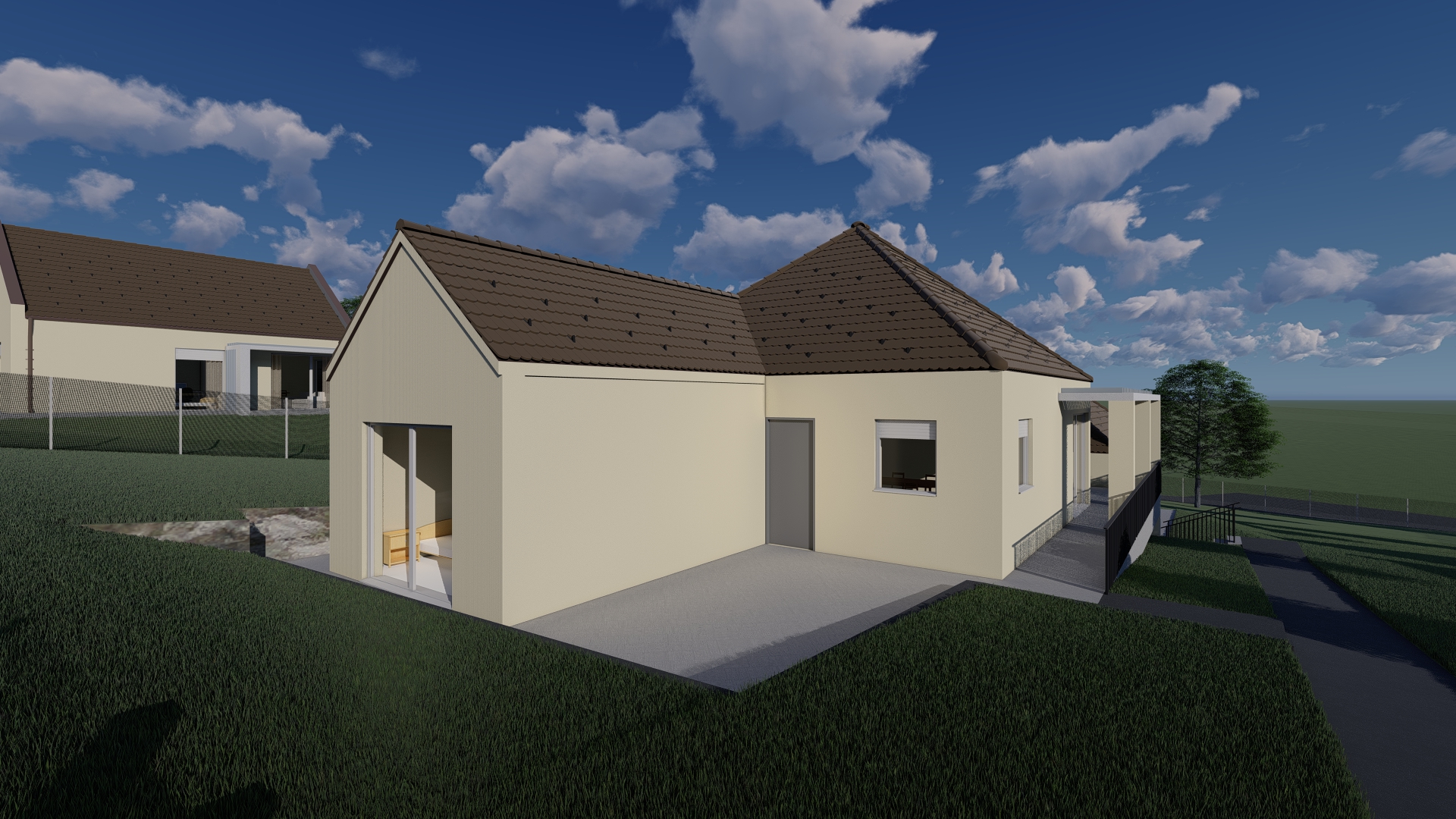 Mintaterv: Lapostetős, egyszintes családi ház, minimalista otthon.