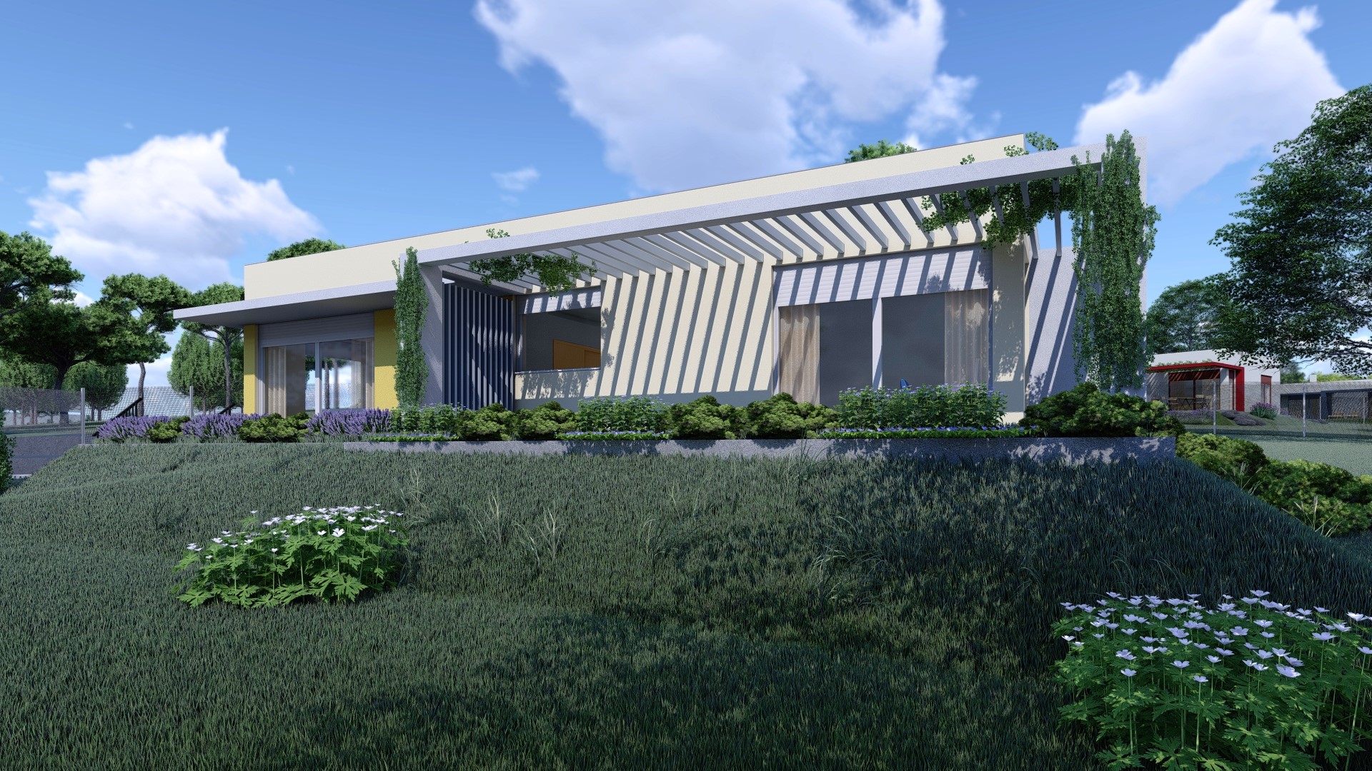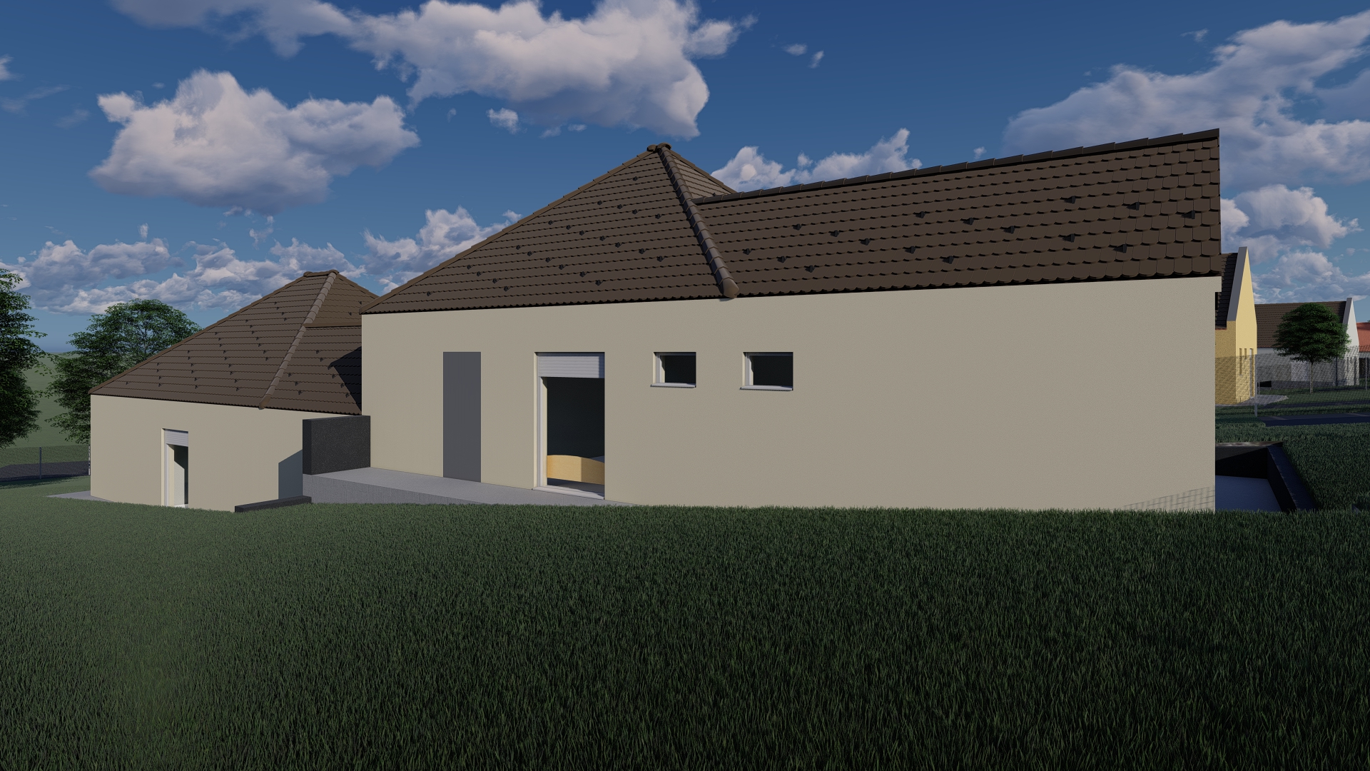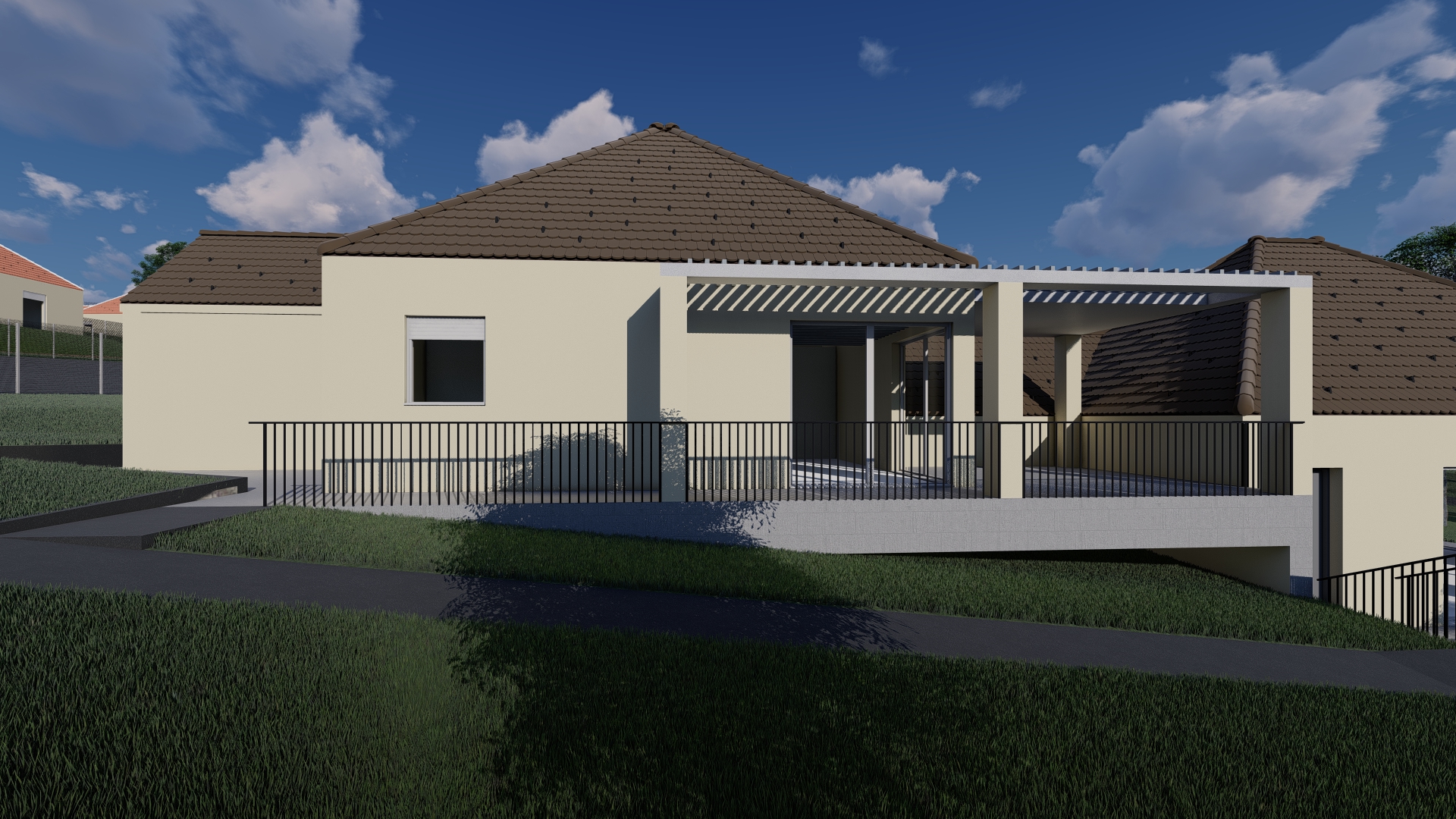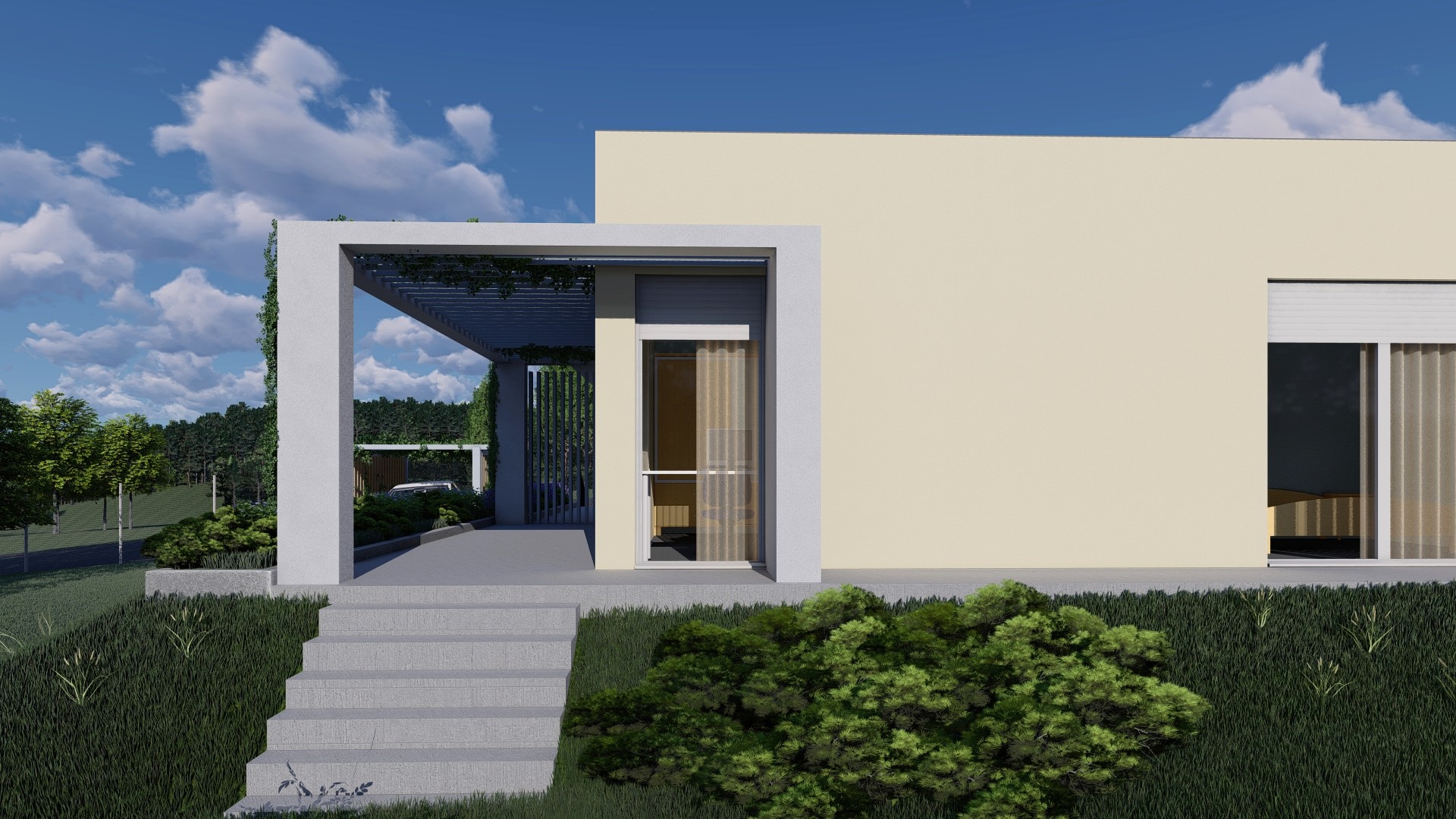 Mintaterv: Lapostetős, egyszintes családi ház, minimalista otthon.